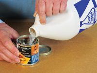 A recent “Finishing Thoughts” article suggested filling varnish cans with mineral spirits to prevent crusting. But, how do you remove the spirits later?