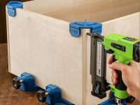 Two sizes of plastic clips, used in tandem with other Rockler Clamp-It® products, hold cabinet, box and drawer components in position for clamping or assembling square corners.