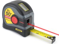 Combination measuring tool provides a steel tape measure plus a laser distance measurer accurate to 50 ft.
