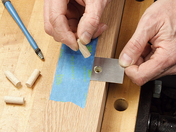 When this reader installs dowels or plugs to fill screw holes, here’s how he prevents glue squeeze-out from soaking into the surrounding wood.