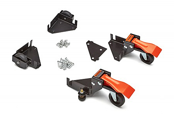 Heavy-duty kit turns a piece of 3/4-in. plywood into a custom-sized mobile base for rolling woodworking machinery around safety.