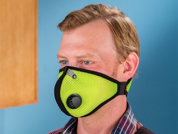Adjustable and washable dust mask features replaceable filters and two exhalation valves to prevent safety glasses from fogging up.