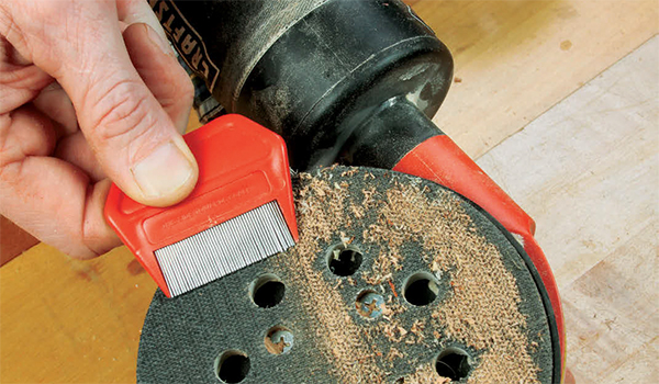 When the “loops” on a sander’s hook-and-loop pad become clogged with dust, the sanding discs won’t cling properly. Here’s a simple fix.