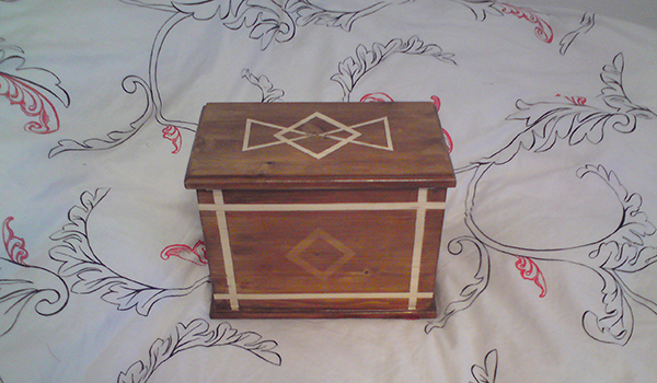 This is a jewelry box that I’ve made for my mom for Christmas. It is made with a dark oak varnish.