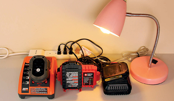 I plugged an old desk lamp into the power strip that turns on whenever I charge my batteries.