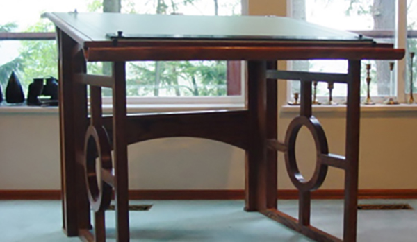 I ran across an old wooden table with a curved plywood pencil tray and decided to build my own custom table.