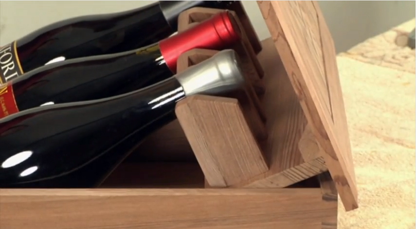 Sandor Nagyszalanczy shows the step-by-step process he used to add a bottle lifting mechanism to a wine gift box.