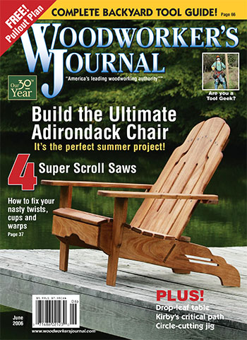 Summer is right around the corner again, thank goodness! And what better way to usher it in than with some new scratch-built yard furniture? In this new issue, you'll have a chance to do just that with a dandy upgrade to the ubiquitous Adirondack chair! We've also got useful and decorative projects for the kitchen and bedroom, plus loads more new content in our various regular departments. We hope you'll put your June copy of Woodworker's Journal to great use as part of your summer shop time. -