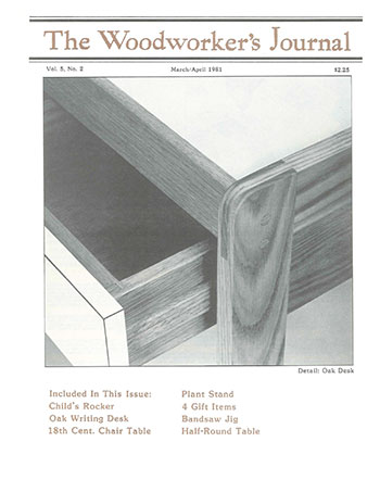 Projects Include: Child’s Rocker, Bandsaw Jig, Push-Pull Toy, Half-Round Table, Spoon Rack, Salt and Pepper Shakers, Calculator Stand, Anchor Thermometer, Plant Stand, Oak Writing Desk, 18th Century Chair Table, Shop-built Handscrew -