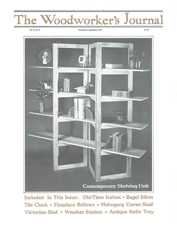 Projects Include: Old-time Icebox, Victorian Sled, Tile Clock, Wine Glass Holder, Mahogany Wall Shelf, Inkwell, Bagel Slicer, Seal Push Toy, Wooden Combs, Antique Knife Tray, Memo Cube, Fireplace Bellows, Contemporary Shelving, Weather Station, Shop-built Bar Clamp -