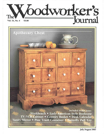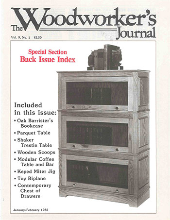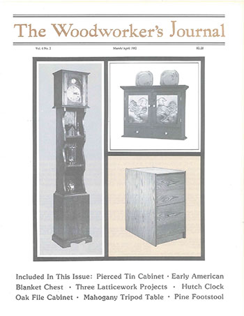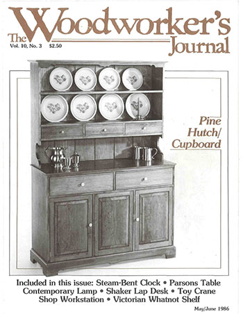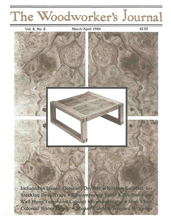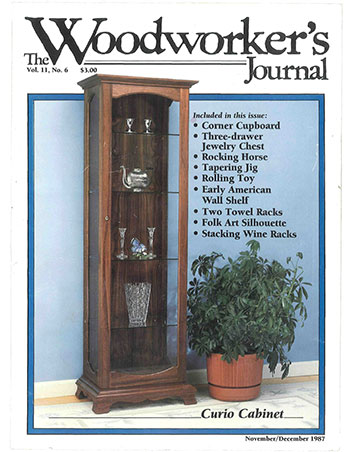 Projects Include: Log Rack and Carrier, Red Barron’s Triplane Toy, Pine Pie Safe, Glass Top Coffee Table, Contemporary End Table, Pine Commode, Corner Cupboard (Part II), Butcher Block Toy Box, Mahogany Corner Shelf, Trivet and Jig -