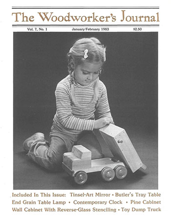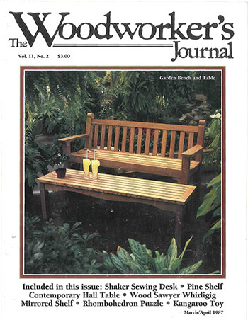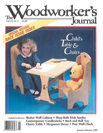 Projects Include: Stereo-End Table, Contemporary Lamp, Towel Holder, Shoeshine Box, Pine Mirror Frame, Pulley Planter, Turtle Pull Toy, Kangaroo Puzzle, Shaker Wool Wheel (Part II), Chopping Block Table, Table Saw Tapering Jig, Half-Round Table, Practical Bird Feeder -