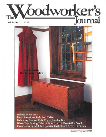 Projects Include: Weathervane, Magazine Rack, Roll Top Desk (Part II), Music Stand, Corner Shelves, Pine Blanket Chest, Shaker Style Bed, Disappearing Money Toy, Pecking Bird Toy -