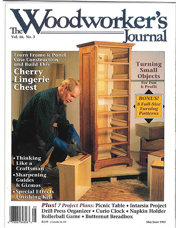 The May/June issue of Woodworker’s Journal that range from the practical, like a simple-to-make Entry Bench featuring dimensioned lumber, to the impressive, like a Limbert Style Hutch patterned after the style of one of the 20th century’s premier Arts & Crafts designers. Practice hand cutting dovetails with a Whiskey Cabinet from Anne Briggs, and build a Compact Drop-Leaf Table as a space-saving solution. Other things you’ll learn in this issue? All about drill presses, the backstory on burls, and how to craft collapsible baskets with shallow angle cuts on the scroll saw. -