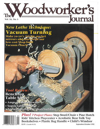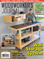 In the September/October issue of Woodworker’s Journal, our projects run the gamut — from a practical wall storage unit for your shop to an esoteric take on a tree trunk table that gives you good reason to try your hand at power carving. Our woodturning columnist completes his three-part series on cored bowls, and we take a closer look at band saw blades, power nailer options and making segmented bowls on a scroll saw. -