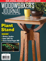 In the November/December issue of Woodworker’s Journal, you’ll find plenty of projects designed to turn your shop into “gift-making central” for the season. Look at this issue’s Holiday Gift Section, and you’ll learn how to make a Band Saw Box designed by David Picciuto, highlight your best family photos with an Inlaid Picture Frame, or stock up the kitchen with accessories like a Banana Hanger, Pasta Serving Set and a handy set of Tongs. Wondering how to finish wood items that will touch foodstuffs? Our finishing expert Michael Dresdner has that covered, while Sandor Nagyszalanczy shares tips and tricks for making sure your hardware looks handsome when you add the final touches to your projects. -