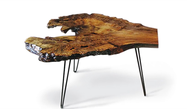 Slab Top Table: A naturally shaped slab of wood lends an impressive look to this table, as publisher Rob Johnstone takes on the task of designing around an organic shape.