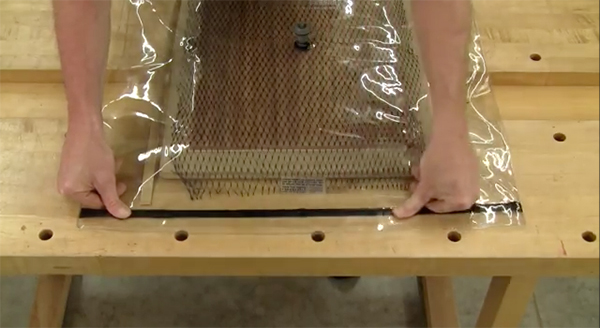 Woodworker’s Journal senior editor Chris Marshall uses a skateboard veneering technique to add an attractive surface to his Greene and Greene Nightstand.