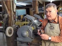 Ernie Conover shows off some of the jigs he uses with his workshop grinder to keep his turning tools sharp, as well as how to use a buffing machine to create a razor edges.