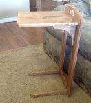 Not everyone has the room for end tables next to the sofa. My wife asked for a table she could use that didn’t block off the living room entry. Our sofa sits tight to the floor all around so I made a table with a counterweight to keep it stable. (Photo 1) The counterweight is the small box at the bottom loaded with 16 pounds of lead shot. The material was knotty alder.