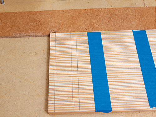 The lap-joint jig allows you to gang-cut the lattice dadoes. Tape the strips together and then mark the joint positions.
