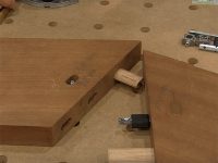 Festool demonstrates in-line and right-angle knockdown fasteners for the XL machine that create strong, flat or right-angle joints.