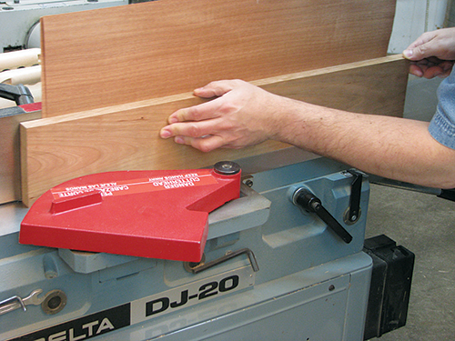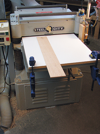 A few quick passes through the thickness planer with an auxiliary bed brings them to final thickness. I’d suggest veneers at l east 1/16″ thick, though I prefer 3/32″, which allows me to do some hand planing an scraping on the finished panels if necessary.