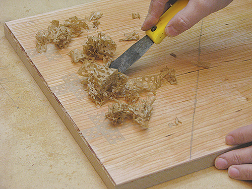 Working with shop-cut veneers isn’t that different, except that you cut them yourself. Start by finding a piece of lumber that has no grain reversals or only very minor ones.