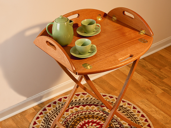 This classic mahogany and brass tray and folding stand will come in handy the next time guests come calling.