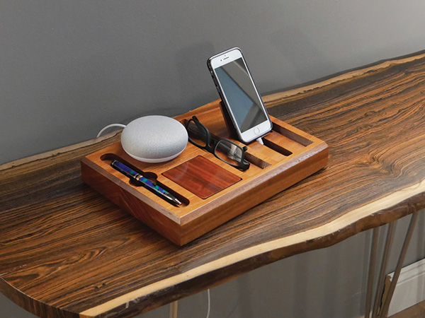 With a space to hold and charge your phone, a spot that will fit a Google Home Mini (or hold paper clips), pen storage, glasses cavity and a covered money “vault,” this project will make your desk cleaner and your day more organized.